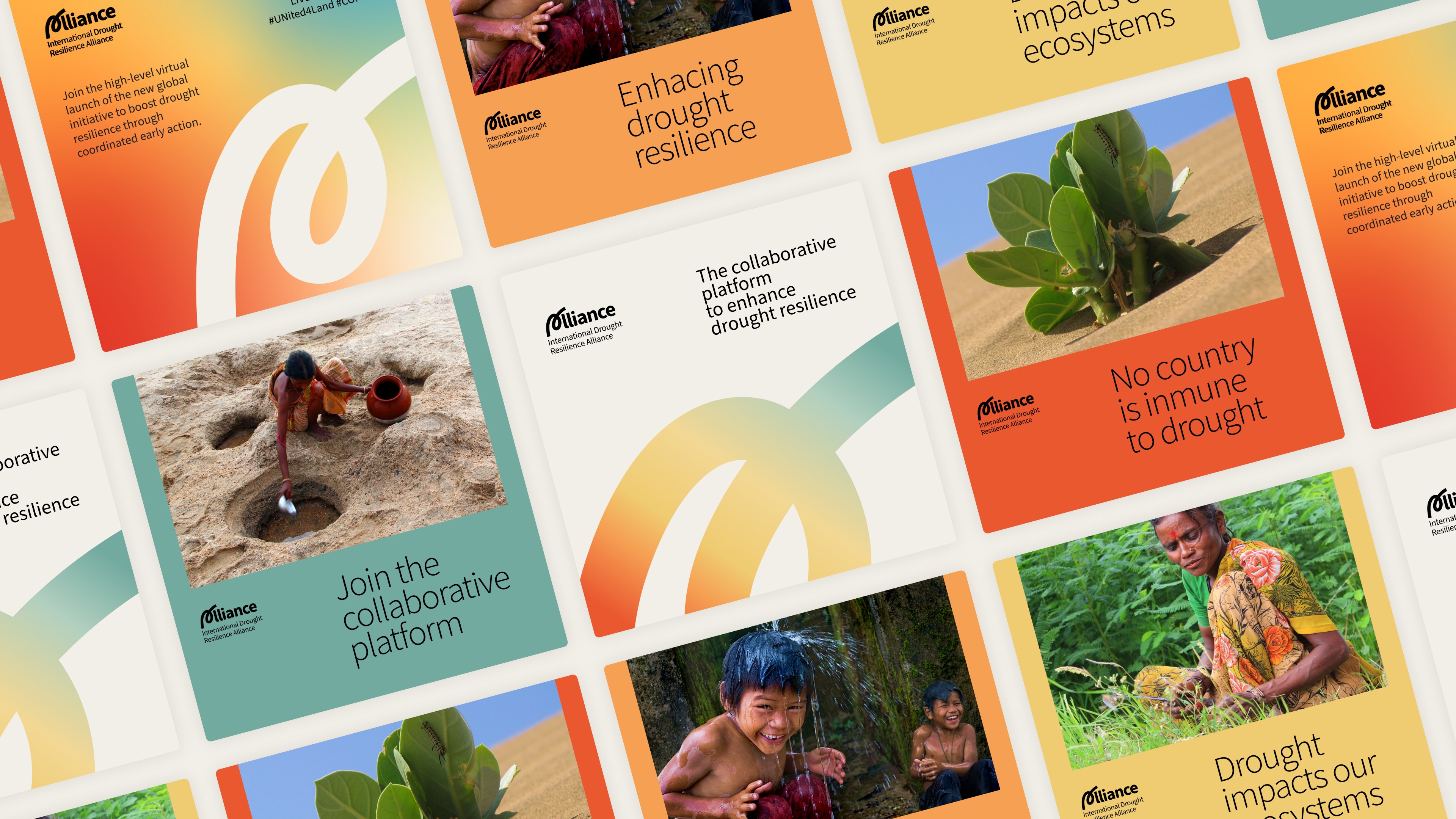 Brand identity for a new United Nations drought resilience alliance — launched at COP27 and still representing the alliance today.